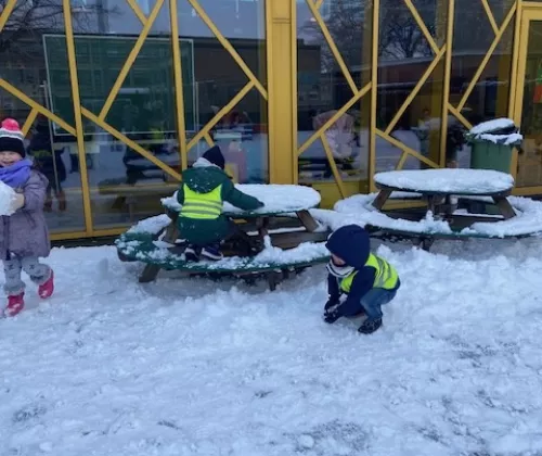 spelen in de sneeuw